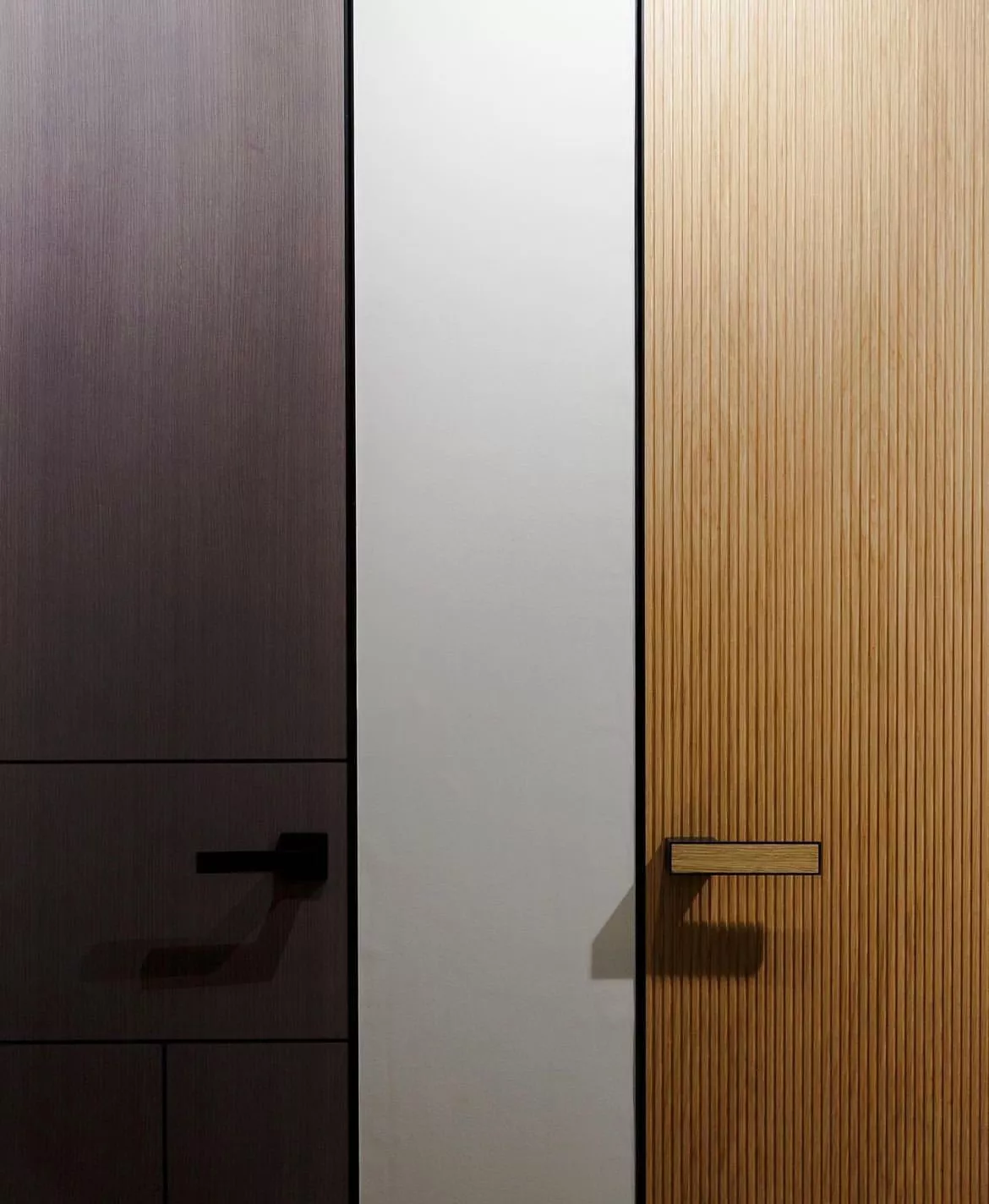 - Современный стиль: Полотна на компланарном коробе (плоскость наличника совпадает с плоскостью полотна) или скрытом коробе (без декоративного наличника) с актуальными дизайнерскими рисунками.